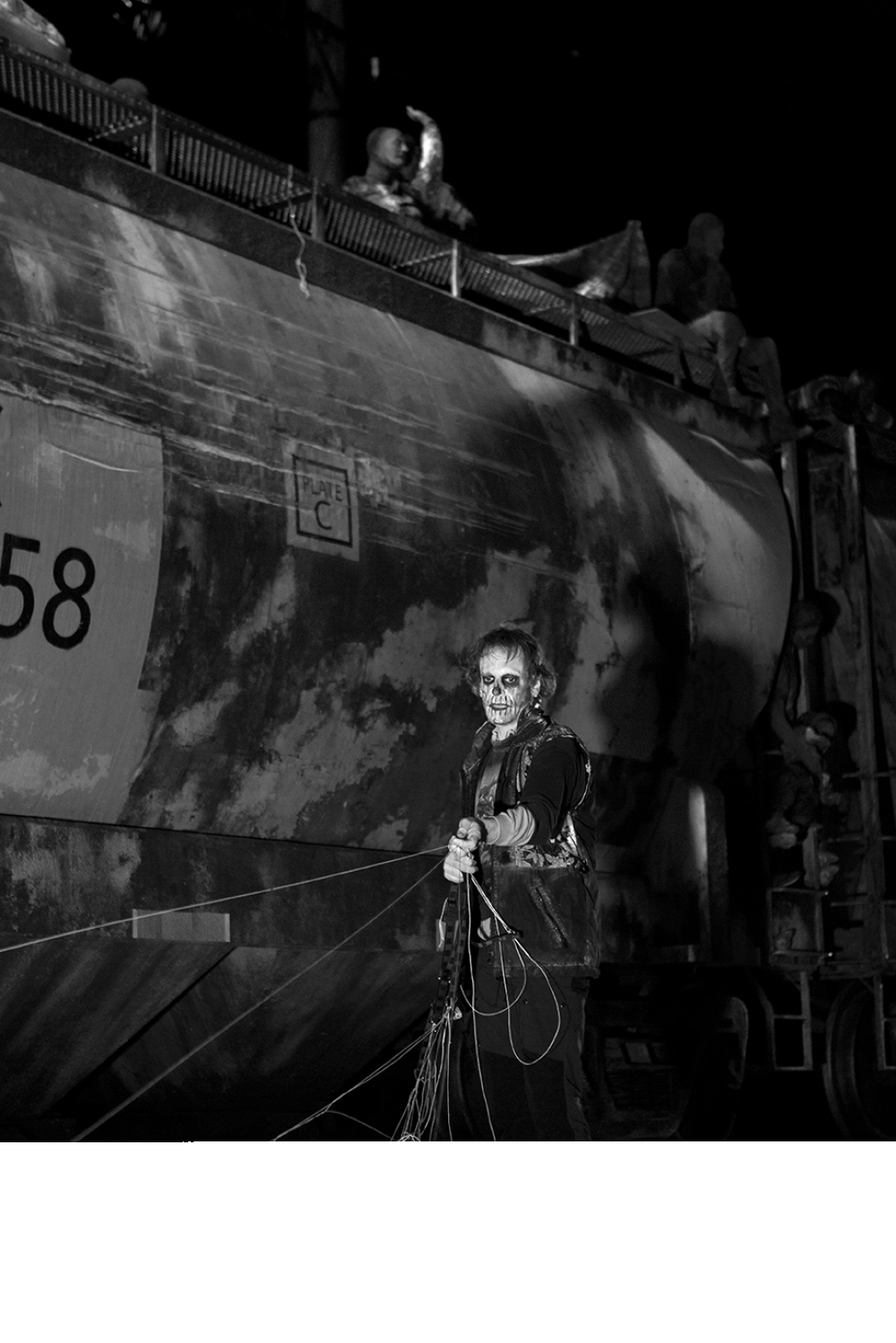 texte Emmanuel Meirieu, Jean Erns-Marie-Louise avec la complicité de Julien Chavrial et Odille Lauriaet mise en scène Emmanuel Meirieu / avec Julien Chavrial, Odille Lauria, Jean-Erns Marie-Louise / sculptures, marionnettes, mannequins, accessoires Emily Barbelin / son et musique Félix Muhlenbach / costumes Moïra Douguet / lumière Seymour Laval / régie Camille Lissarre, Jérémie Angouillant