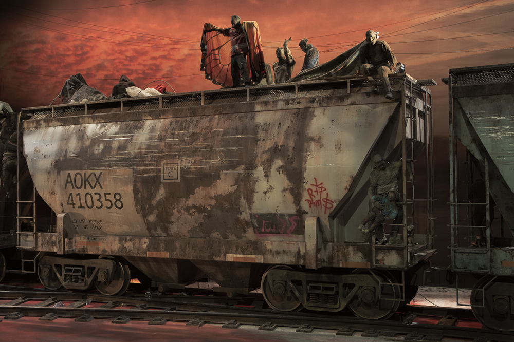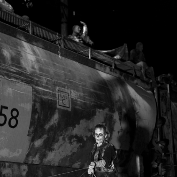 Dans un impressionnant décor, carcasse de wagon éventrée, voile de parapente, projection en surimpression, vols de papillons, Emmanuel Meirieu croise les destinées. Après Dark was the Night présenté au dernier festival, il dresse un autre « monument aux oublié(e)s ». Double trace de migration, double trace de notre temps...